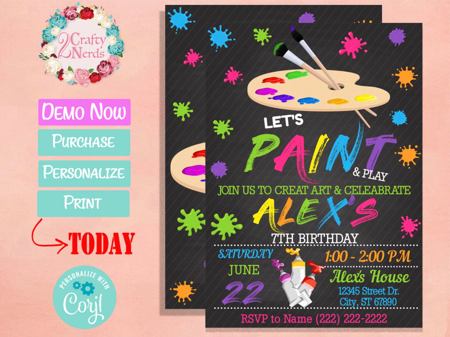 { Painting Invitation Birthday Party, Art Party Invitation, Paint Birthday Invitation, Art Party, Paint Party, Painting Birthday Party, Art Theme, Paint Theme, Painting Theme, Art Painting Party, Art Birthday Party, Personalized, Customizable, Digital Printable Invite }