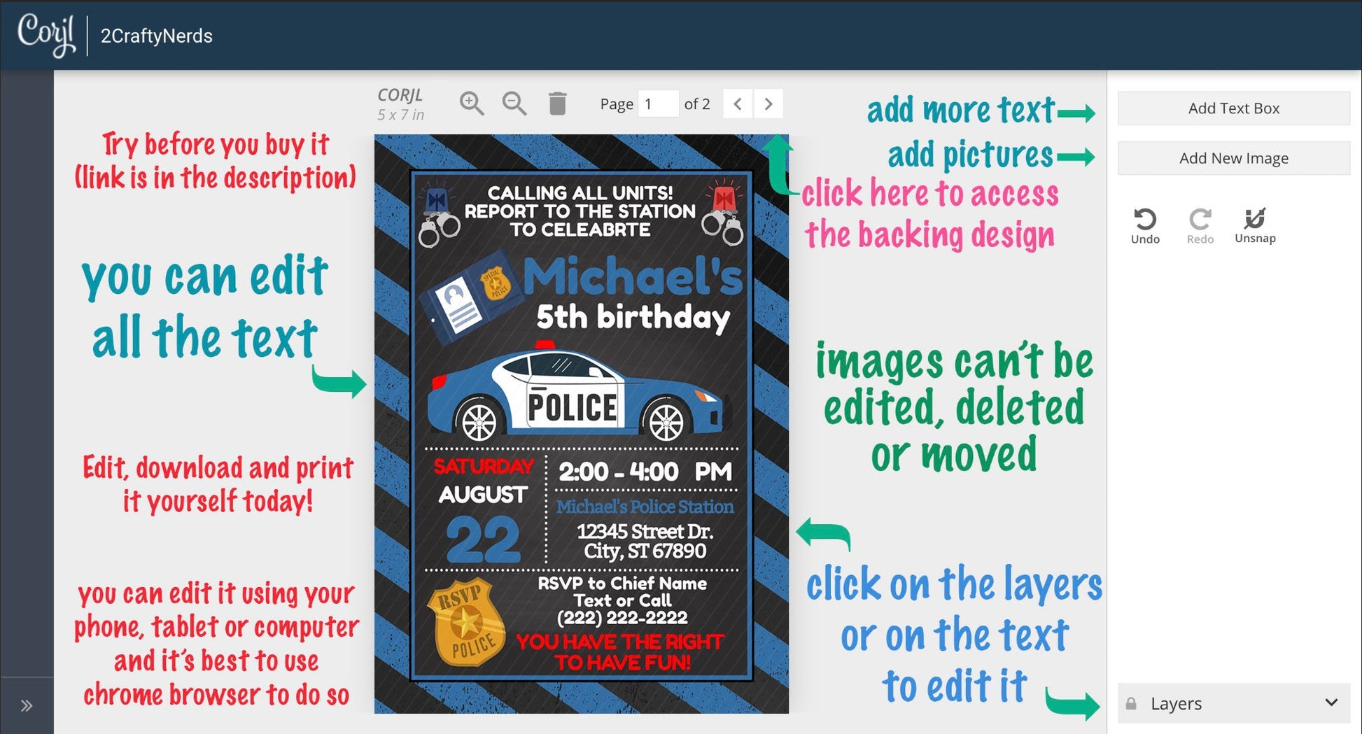 Police Birthday Invitation with Photo, Police Party, Cop invitation | Editable Instant Download | Edit Online NOW Corjl | INSTANT ACCESS