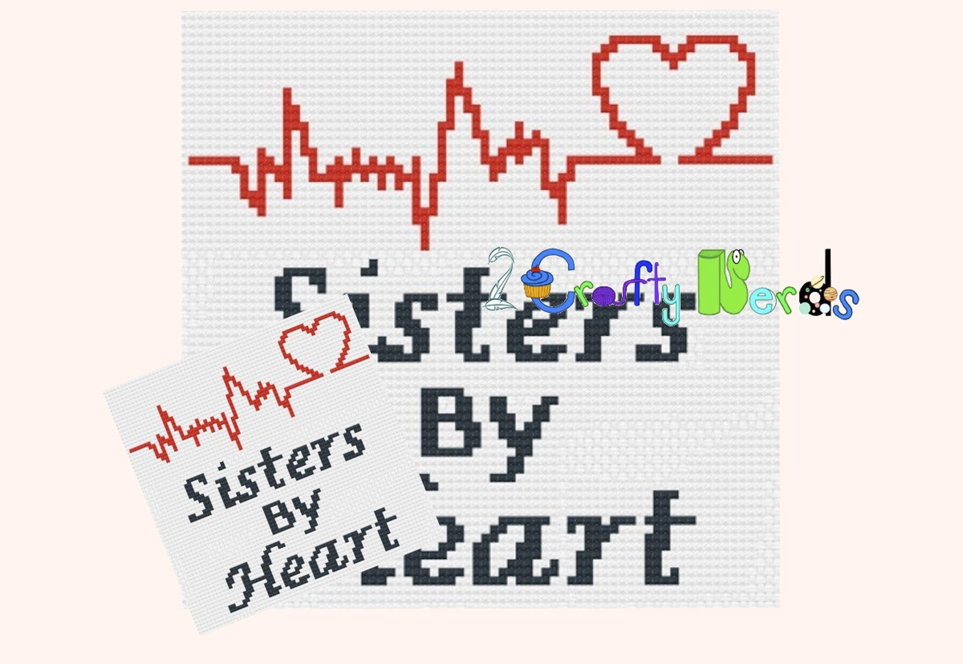 Sisters By Heart Pillow SC Size: 70x70 Pattern Graph DIY & Written PDF Instructions Printable Digital Grid Crochet Knit Do It Yourself